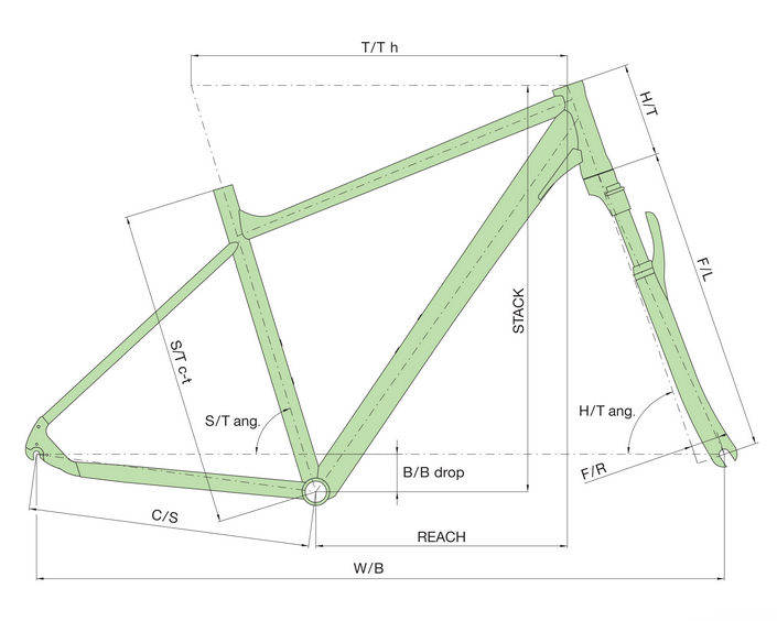 - T/T a - top tube actual, skutočná dĺžka hornej rámovej trubky