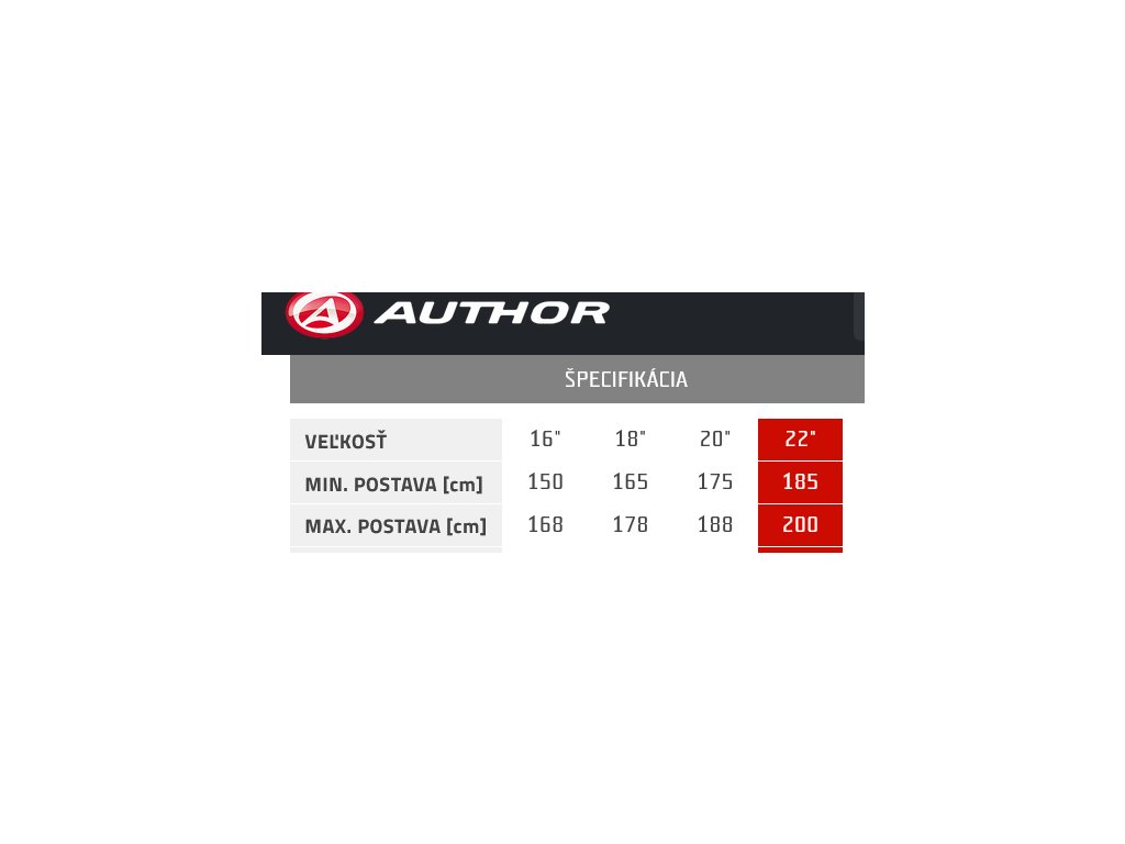 | Rám: | AUTHOR carbon Toray T700 monocoque 29" |