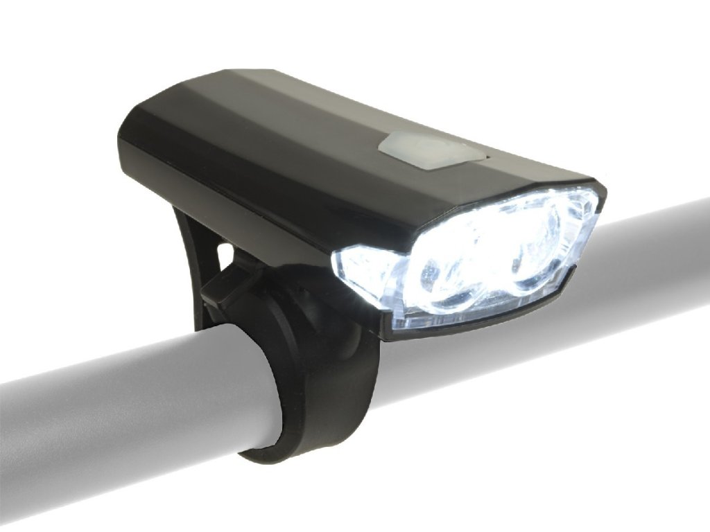 predná lampa s 2 LED diódami, svetelný výkon 40 lm, zdroj dobíjací Lithium-ion akumulátor 300 mAh, pre dlhú životnosť akumulátora sa doporučuje aspoň 1 x za 6 mesiacov plne nabiť, indikátor dobíjania vo vypínači: červená LED = nabíjanie / zelená LED = plne nabitý akumulátor, pri nízkom stave batérie sa lampa automaticky vypne, doba svietenia: 8 h / 100% výkon; 12 h / 50% výkon; 10 h blikanie, napájací kábel priložený (USB A / Mini-B)