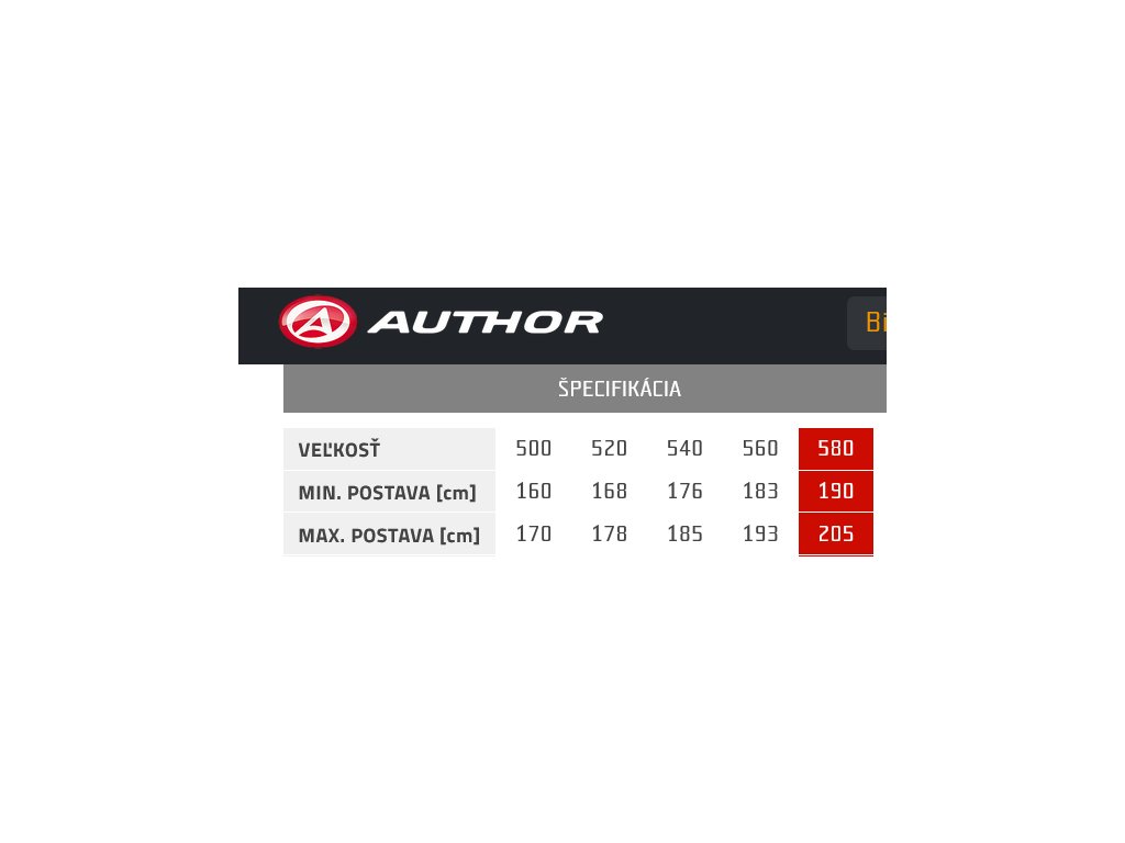 | Veľkosť | 500 | 520 | 540 | 560 | 580 |
