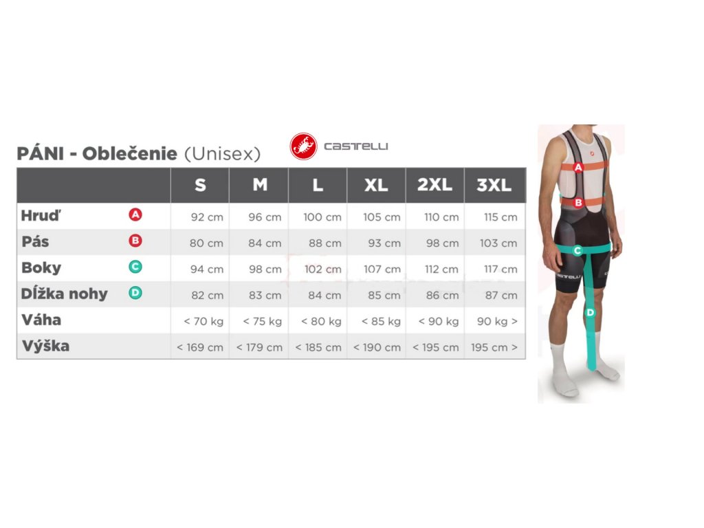 Značka Castelli má svoje = talianske číslovanie veľkostí.( treba si vybrať minimálne o cca 1 veľkosť väčšiu ako predpokladáte )